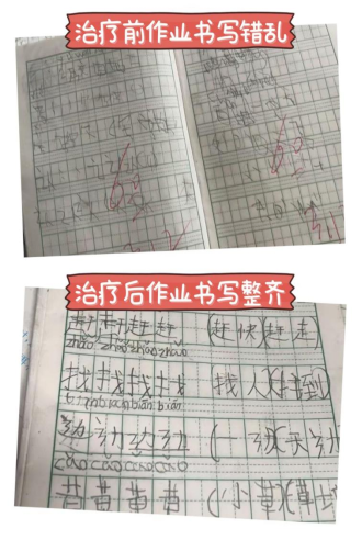 魏某某,男,7岁,书写障碍、写字无法辨识,记忆力差,注意力不集中、多动、坐不住、小动作较多,对感兴趣的古诗背诵至少需要20分钟,经过一个疗程的听觉训练和神经调控技术治疗后,家长反馈书写技能提升、专注力增强、多动有所控制,对感兴趣的古诗10分钟左右即可背诵。