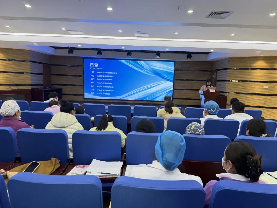 培训还特邀法律顾问王冰荻开展“法律法规在临床实践中的运用与风险防范”专题讲座,结合典型案例,阐释了医疗文书书写、知情同意履行等环节的法律要求,引导医务人员树立规范执业、防御性医疗的思维,将法律意识融入日常诊疗全过程。